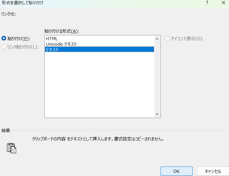 「テキスト」形式を選択してOKをクリックします