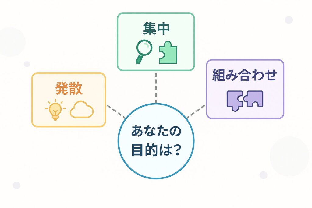 【使い分けマップ】あなたの目的はどれ?「発散」「集中」「組み合わせ」の最適な使い方