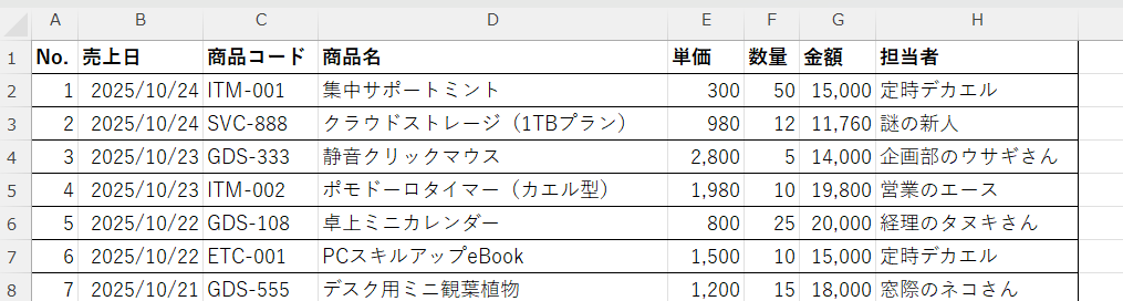 表を作るとき、「売上」「利益」「日付」といった項目行(見出し)を太字にするだけで、データが格段に見やすくなります。