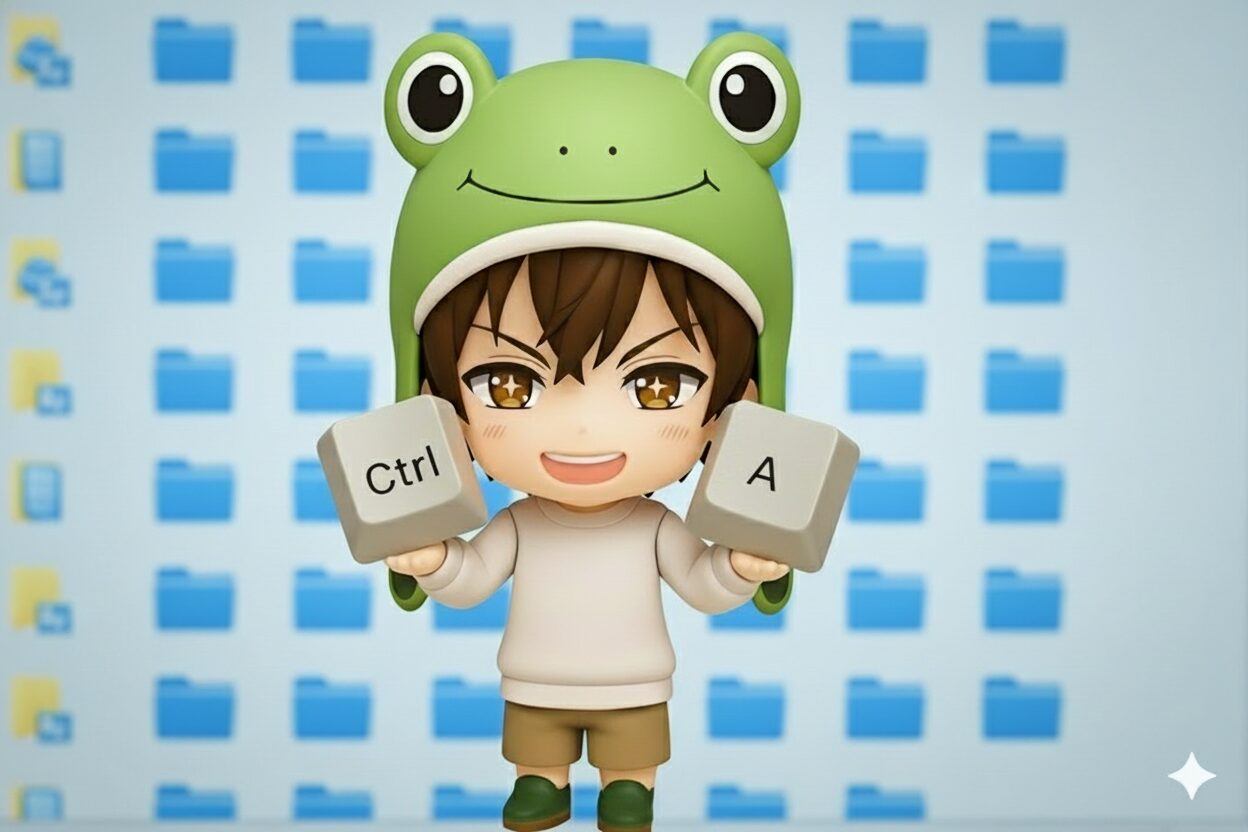 さて、あなたはパソコン作業で、マウスをドラァーーッグしてファイルや文字を一生懸命選んでいませんか?「全部選択したいだけなのに、端っこまでなかなか届かない…」そんな経験、私もあります。