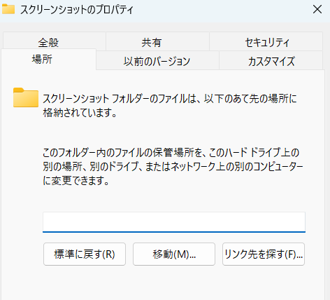 もし「保存先 変更」をしたい場合は、「スクリーンショット」フォルダを右クリックして「プロパティ」を開き、「場所」タブから任意のフォルダ(デスクトップやOneDriveなど)へ移動させるだけで簡単に変更可能です。